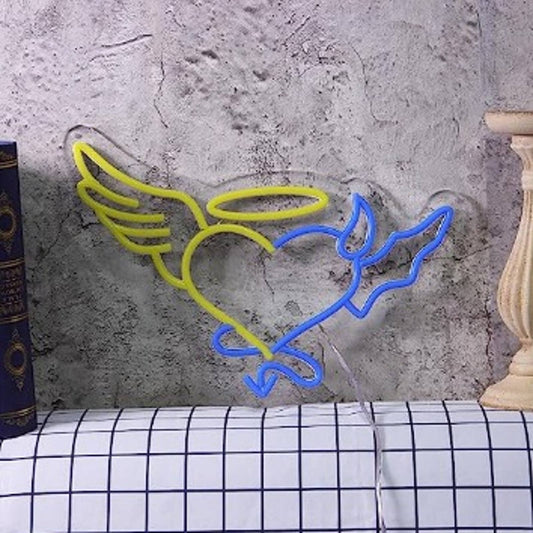Lovely Bright Blue / Yellow Angel Wing Devil Heart LED Night Light Room Wall Dec