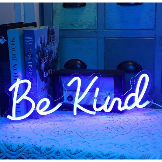 Lovely Bright Blue Be Kind LED Night Light Room Wall Decoration