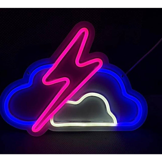 Lovely Bright Blue Cloud White Cloud Pink Lightning Bolt LED Night Light Room Wa