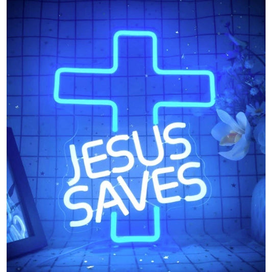 Lovely Bright Blue White Jesus Saves Cross LED Night Light Room Wall Decoration