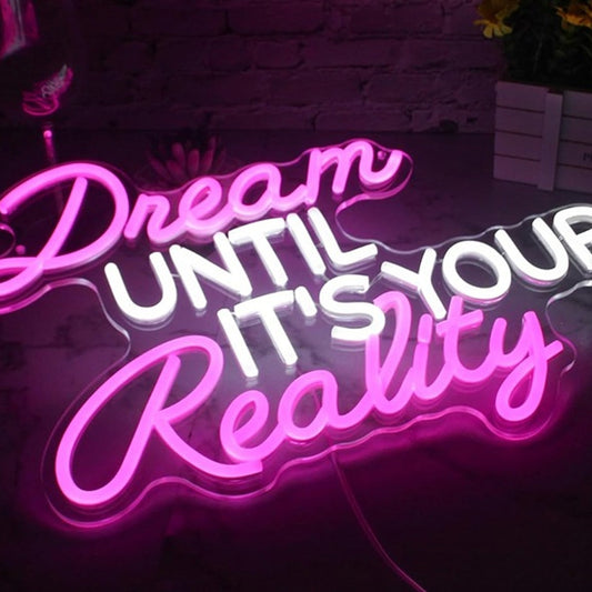 Lovely Bright Pink / White “Dream until It’s Your Reality” Light Room Wall Decor