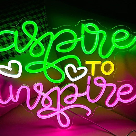 Lovely Bright Pink / Green “Aspire to Inspire” LED Night Light Room Wall Decor