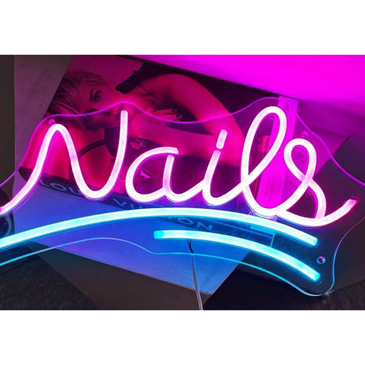 Lovely Bright Pink / Blue Nails Salon Shop Business LED Light Sign Room Wall Dec