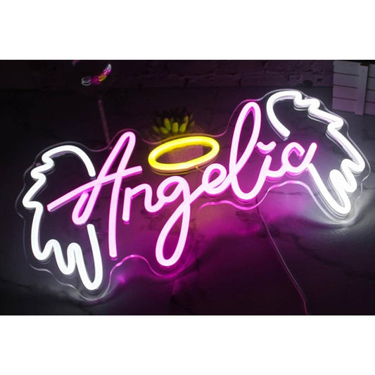 Lovely Bright Pink Angelic Angel Wing Halo LED Night Light Room Wall Decor