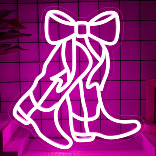 Lovely Bright Pink Bow Cowgirl Boots LED Night Light Room Wall Decoration