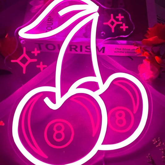 Lovely Bright Pink Cherries LED Night Light Room Wall Decoration