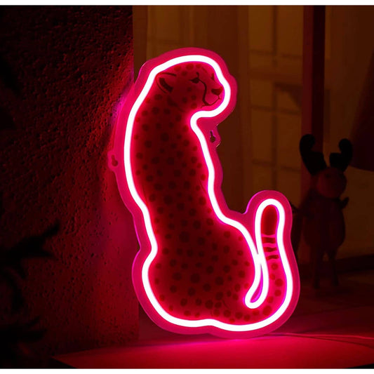Lovely Bright Pink Cheetah LED Night Light Room Wall Decoration