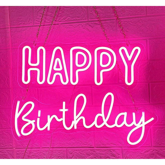 Lovely Bright Pink Bubble Letter Happy Birthday LED Night Light Room Wall Decora