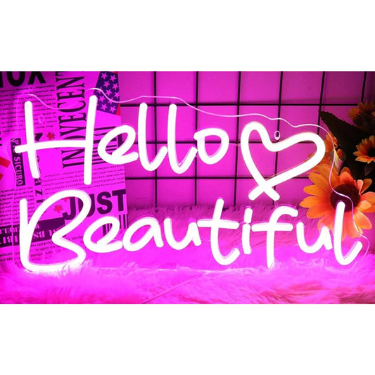 Lovely Bright Pink Heart Hello Beautiful LED Night Light Room Wall Decor