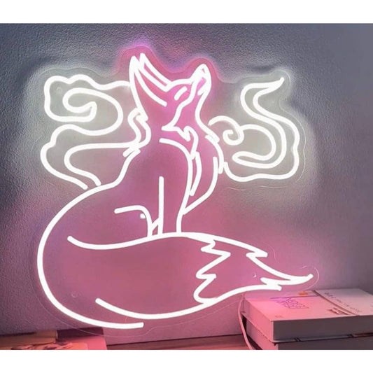 Lovely Bright Pink Mystic Fox LED Night Light Room Wall Decoration