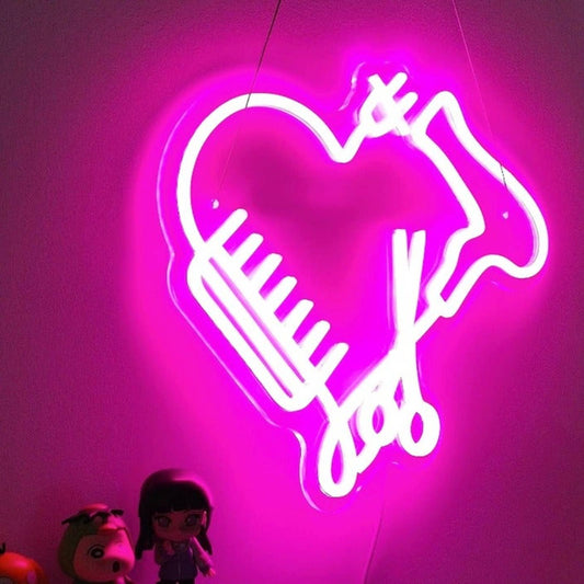 Lovely Bright Pink Salon Spa Heart LED Light Comb Scissor Hair Dryer Decor