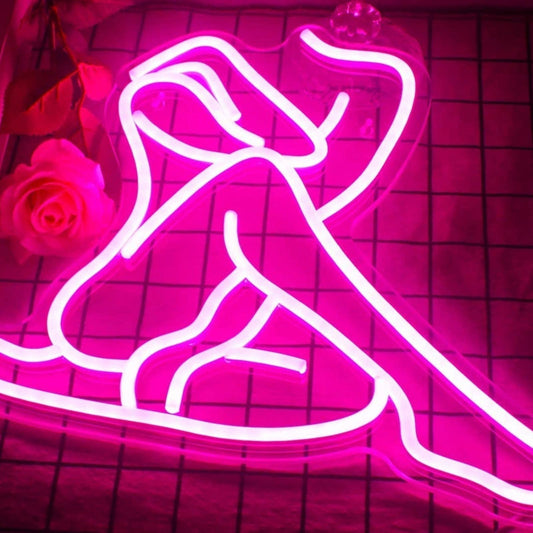 Lovely Bright Pink Sitting Woman LED Night Light Room Wall Decoration