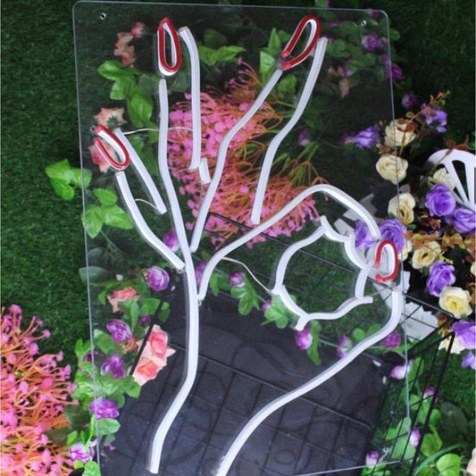 Lovely Bright Red Nails A-OK Hand LED Night Light Sign Room Wall Decoration