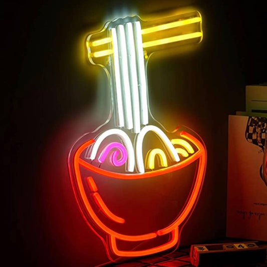 Lovely Bright Red Swirly Noodle Bowl LED Night Light Room Wall Decoration