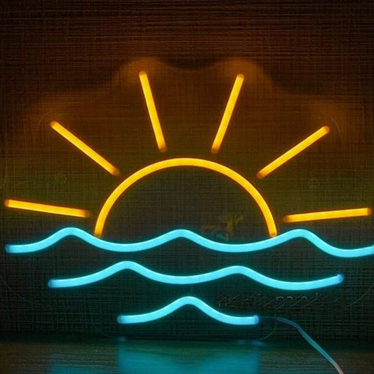 Lovely Bright Shining Sun Rise Over Ocean Waves LED Light Room Wall Decor