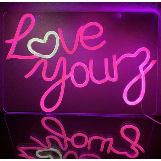 Lovely Bright Warm Pink “Love Yourz” White Heart LED Night Light Room Wall Decor