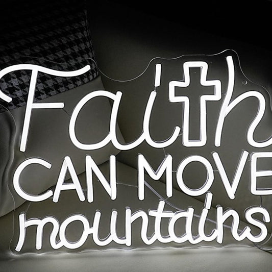 Lovely Bright White “Faith Can Move Mountains” LED Night Light Room Wall Decor