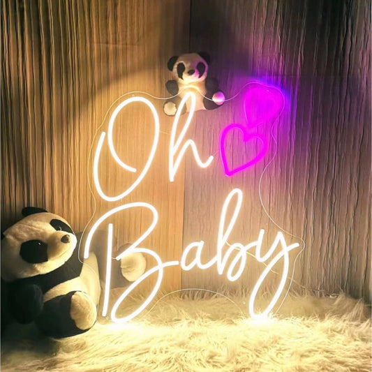 Lovely Bright White/Pink Oh Baby Heart LED Night Light Room Wall Decoration