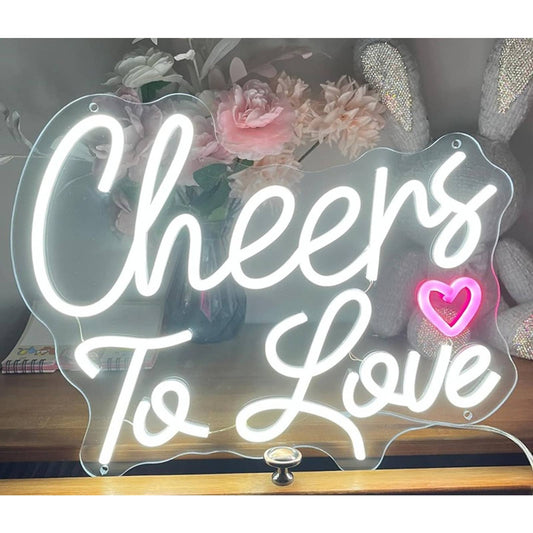 Lovely Bright White/Pink Heart “Cheers to Love” LED Night Light Room Wall Decor