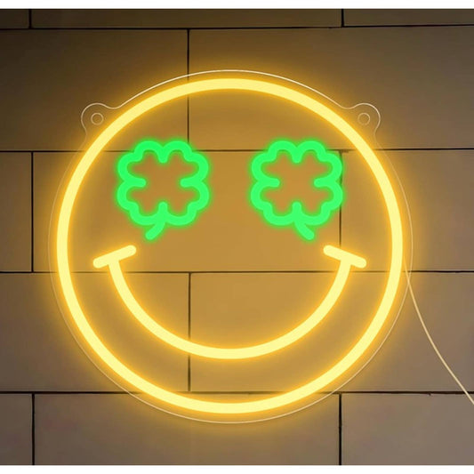Lovely Bright Yellow Four Leaf Clover Eye Smiley Face LED Light Wall Decor