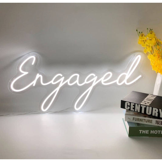 Lovely Large Simple Bright Cool White “Engaged” LED Light Celebration Decoration
