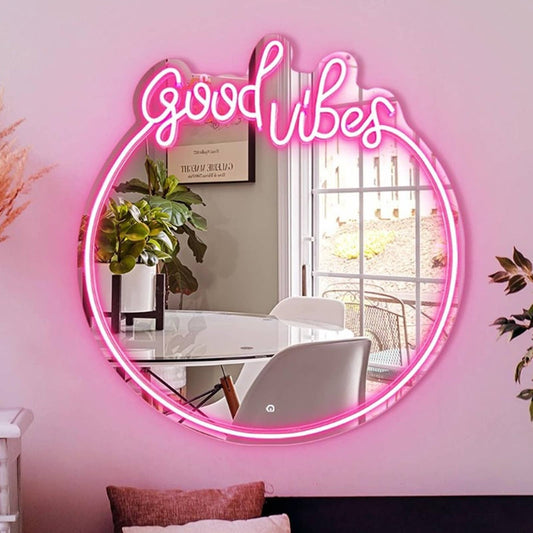 Lovely Quality Bright Pink “Good Vibes” Mirror LED Light Room Wall Decor