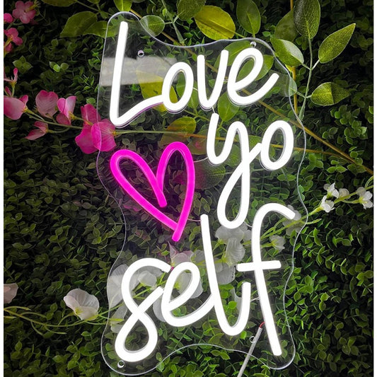 Lovely Vivid Bright Pink / White “Love Yourself” Heart LED Night Light