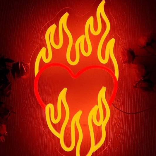 Lovely Vivid Warm Bright Heart on Fire LED Night Light Room Wall Decor