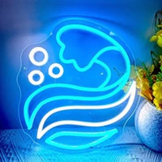 Lovely White Blue Crashing Waves LED Night Light Room Wall Art Decoration