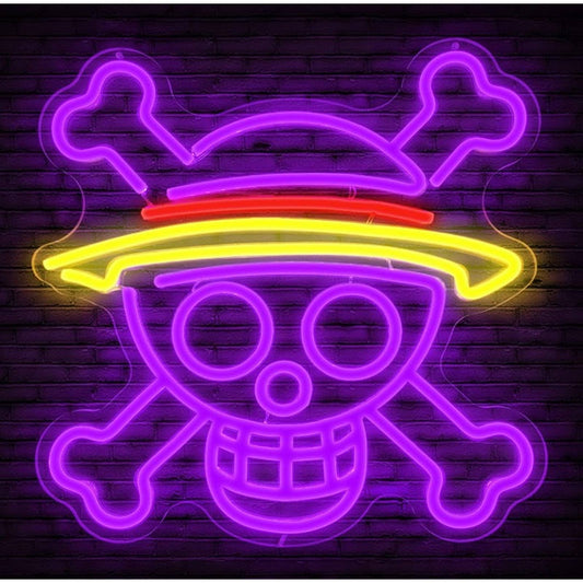 Purple/Yellow Skull Hat Monkey D. Luffy One Piece LED Light Anime Room Wall Deco