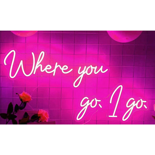 Romantic Large Bright Pink “Where you go, I go” LED Night Light