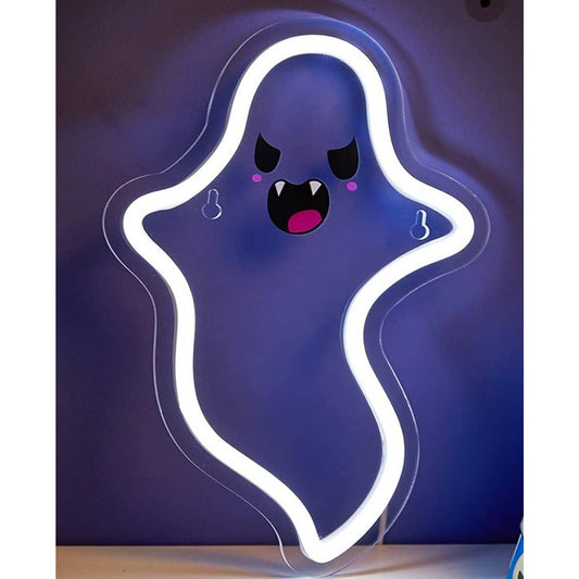 Spooky Vivid Bright Purple Crazy Ghost LED Night Light Halloween Decor