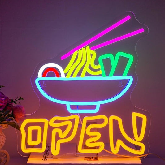 Vivid Bright Colorful “Open” Ramen Noodles LED Light Business Wall Window Decor