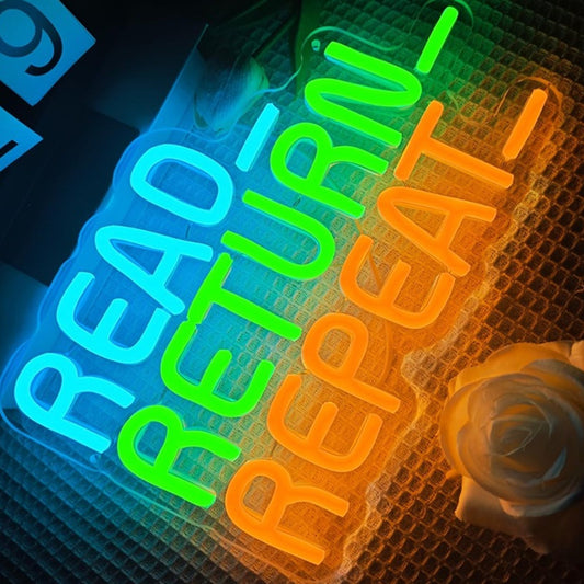 Vivid Bright Colorful “Read, Return, Repeat” LED Night Light Room Wall Decor