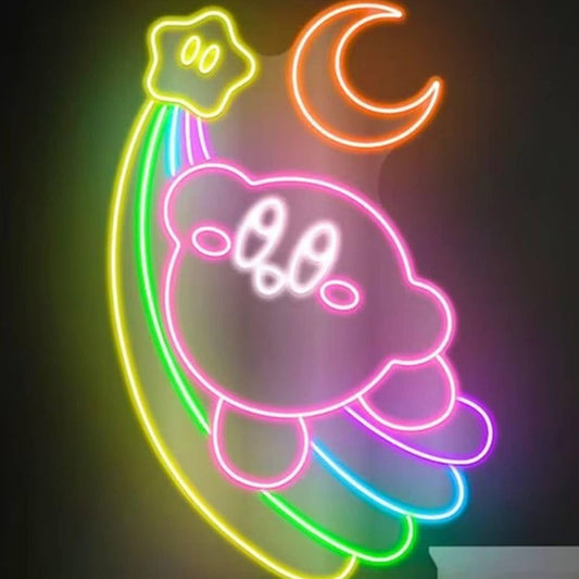 Vivid Bright Flying Kirby on Rainbow Shooting Star LED Night Game Room Decor