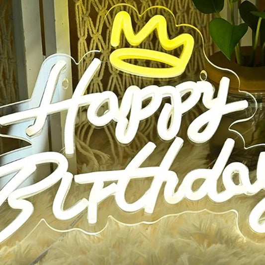 Vivid Bright Golden Happy Birthday Crown LED Night Light Room Wall Party Decor
