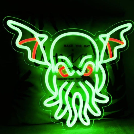 Vivid Bright Green Cthulhu Squid Octopus Monster LED Night Light Room Wall Decor