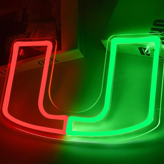 Vivid Bright Miami Hurricanes U Logo LED Night Light University Decor