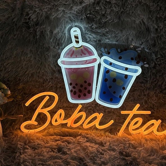 Vivid Bright Pink / Blue Tasty Boba Tea LED Night Light Shop Room Wall Decor