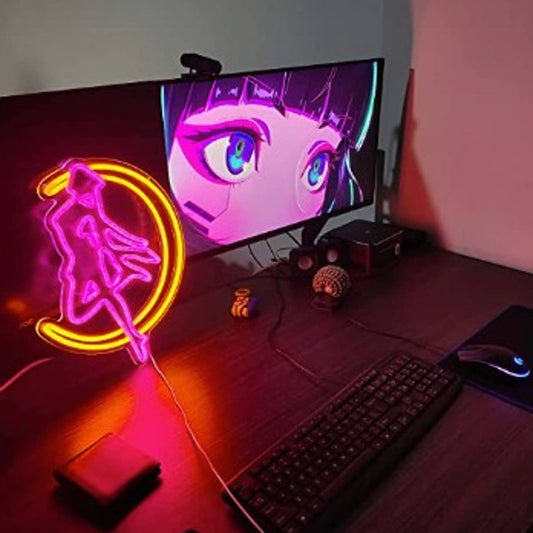 Vivid Bright Pink / Yellow Sailor Moon Crescent LED Night Light Anime Japan Deco