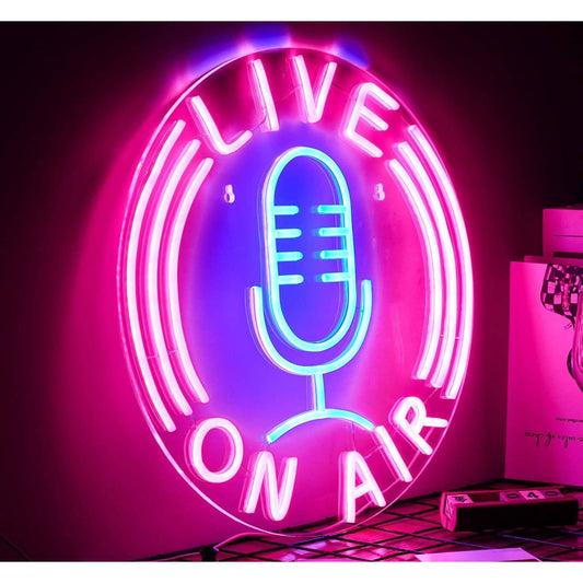 Vivid Bright Pink Blue Yellow Live ON AIR Mic LED Night Light Studio Radio Decor
