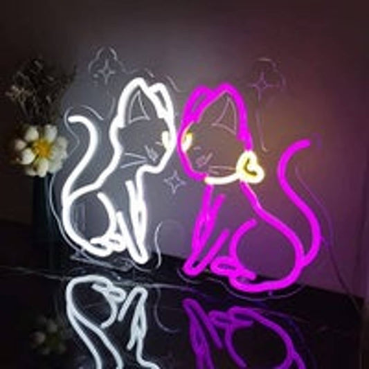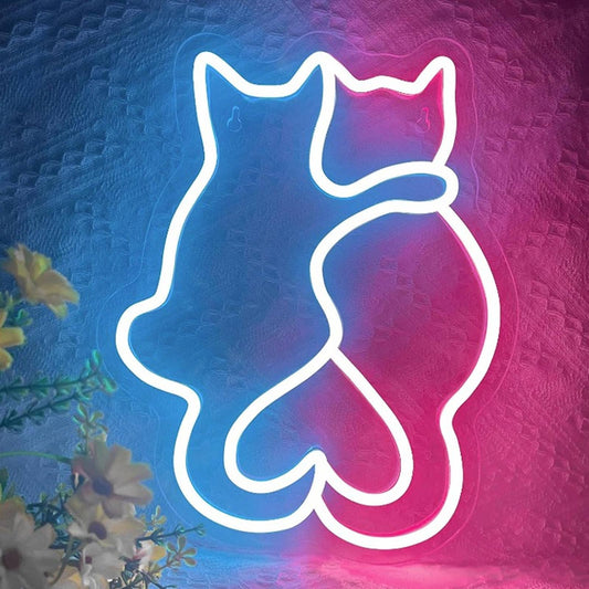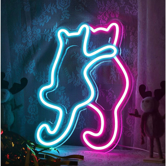 Adorable Bright Pink / Blue Kitty Cat Friends LED Night Light Room Wall Decorati