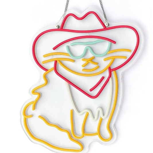 Vivid Fun Bright Cowboy Cat w/ Sun Glasses & Bandana LED Night Light Decor