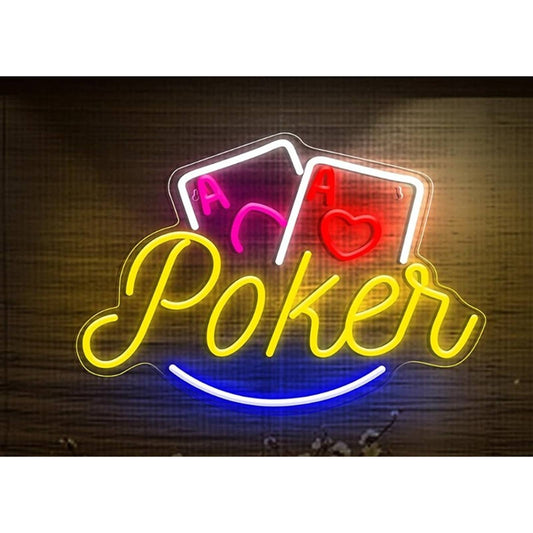 Vivid Pink Poker Cards Hearts & Ace LED Night Light Game Room Wall Decor