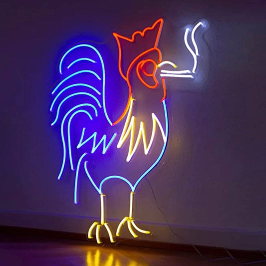 Fun Bright Colorful Smoking Rooster LED Night Light Room Wall Decoration