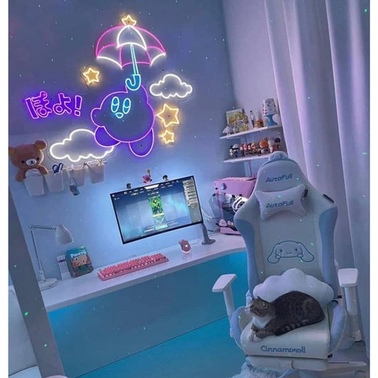 Fun Bright Kirby Floating in Starry Night Sky LED Light Anime Japan Sign Room De