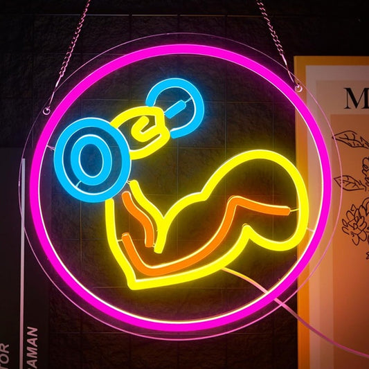 Fun Bright Pink Circle Strong Arm Dumbbell Fitness Light Gym Exercise Wall Decor