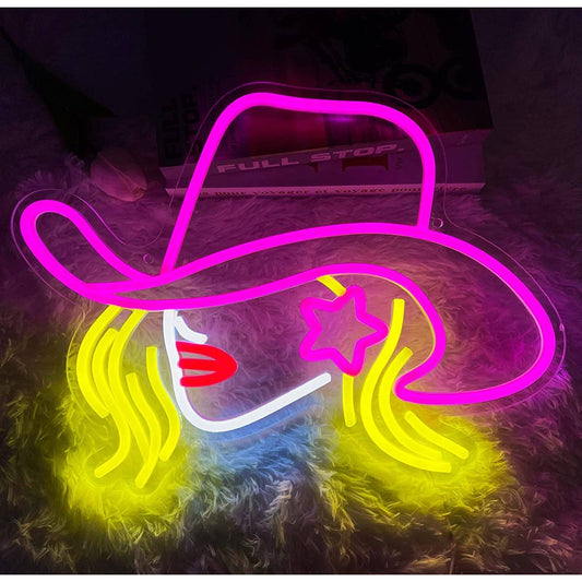 Fun Bright Pink Blue White Cowgirls LED Night Light Room Wall Decoration