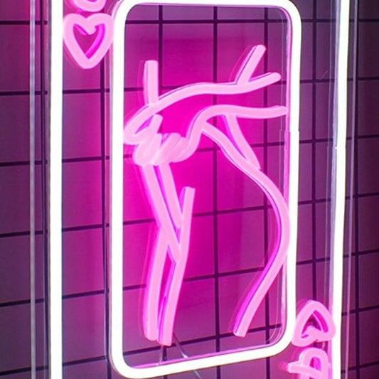 Fun Bright Pink Queen Playing Card Woman Heart LED Night Light Decor