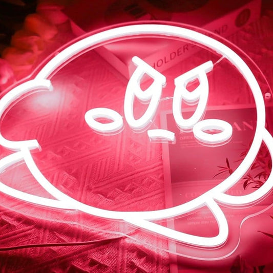 Fun Bright Pink Mad Angry Kirby LED Night Light Video Game Room Wall Decor